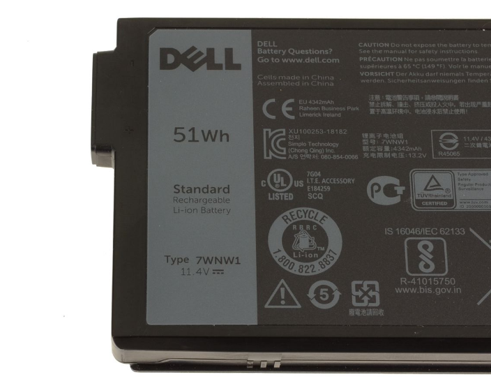 7WNW1 07WNW1 3-cell 51Wh Original Laptop Battery For Dell OEM Latitude 5424 / 5420 / 7424 Rugged