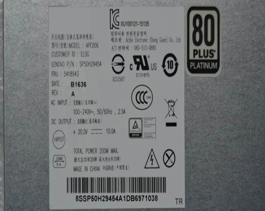 APE006 APE006-EL0G SP50H29454 54Y8943 PSU For Lenovo AIO 700-24ISH 27ISH 6Pin 200W Switching Power Supply