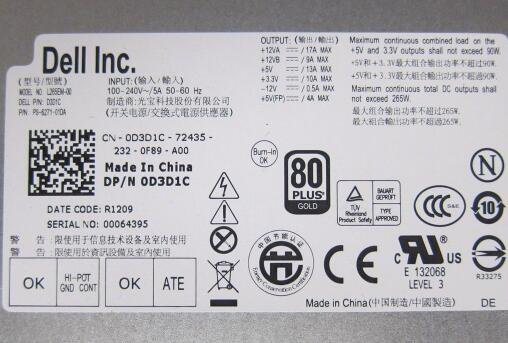 D3D1C 0D3D1C CN-0D3D1C 265W Dell Optiplex 790 990 MT Power Supply PSU