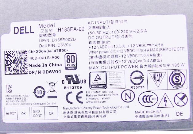 1 review for D6V04 0D6V04 For Dell Inspiron 23 (5348) / Optiplex 9030 All-In-One 185W Power Supply
