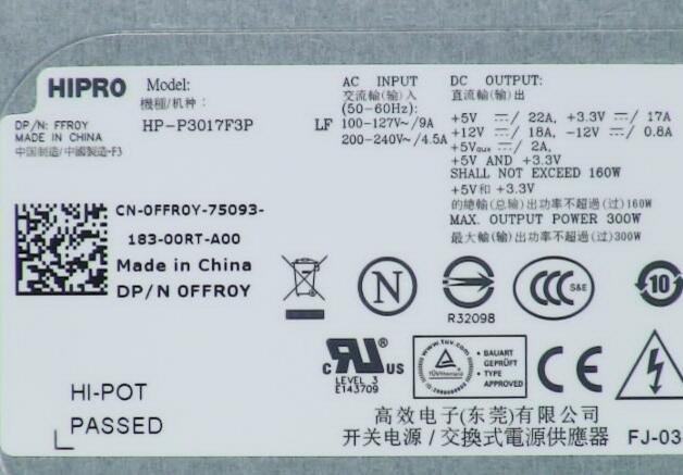 FFR0Y – 300W Dell Inspiron Desktop 545 Inspiron & Vostro Desktop Power Supply