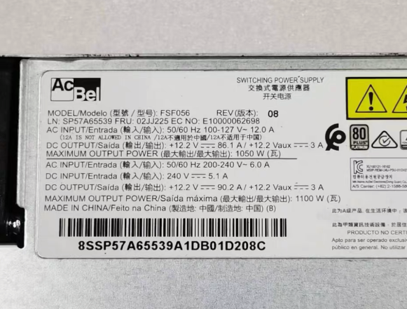 FRU 02JJ225 FSF056 1100W 80+ Platinum Server Power Supply For Lenovo SR850